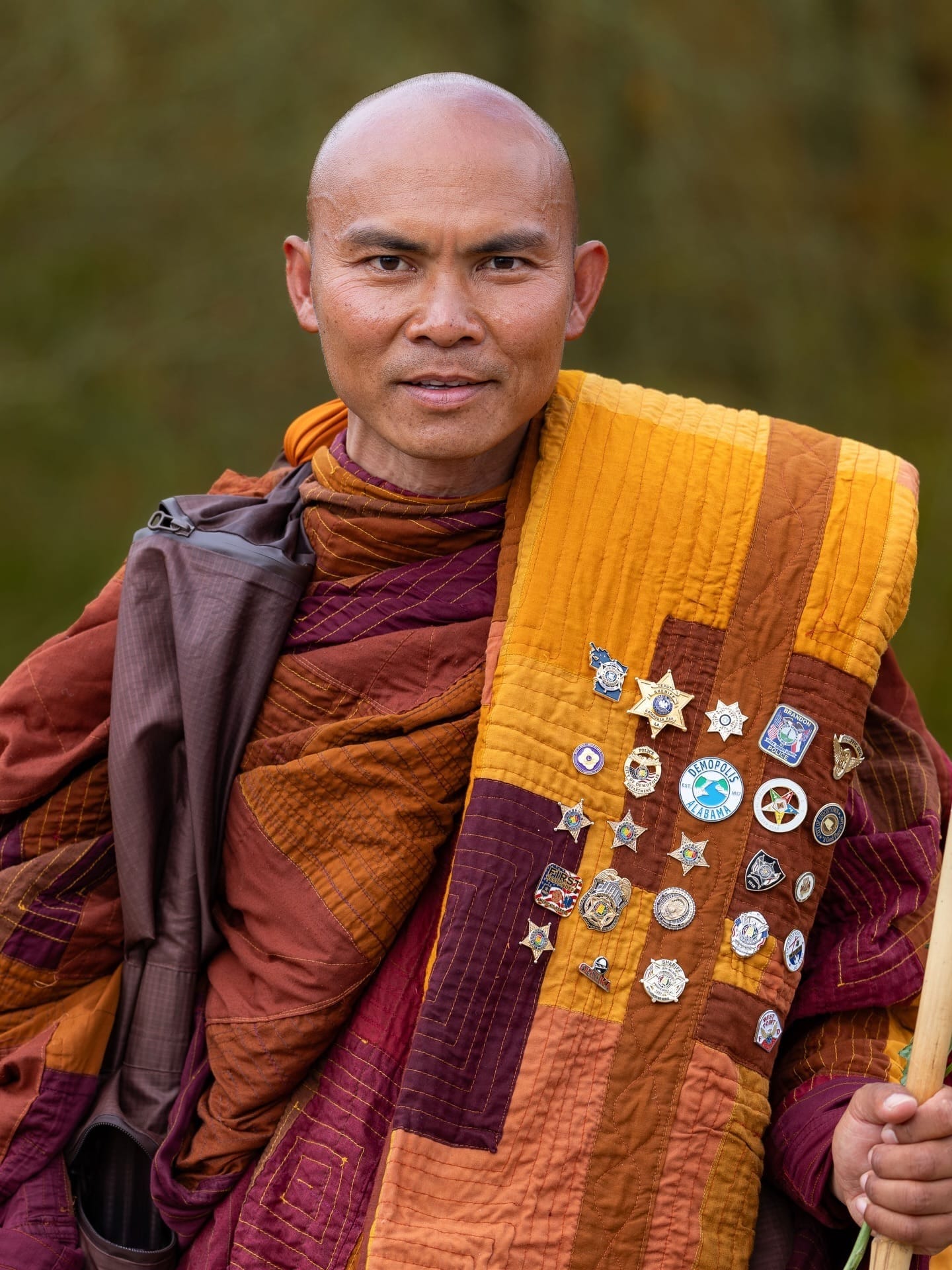 Henry took a portrait of Bhante Sumato, a Buddhist monk who is part of the Walk for Peace and also captures the journey as a photographer. As the monks walk in a single-file line, Sumato walks with them while taking pictures. He has taken thousands of photos, and each one tells a unique and powerful story.